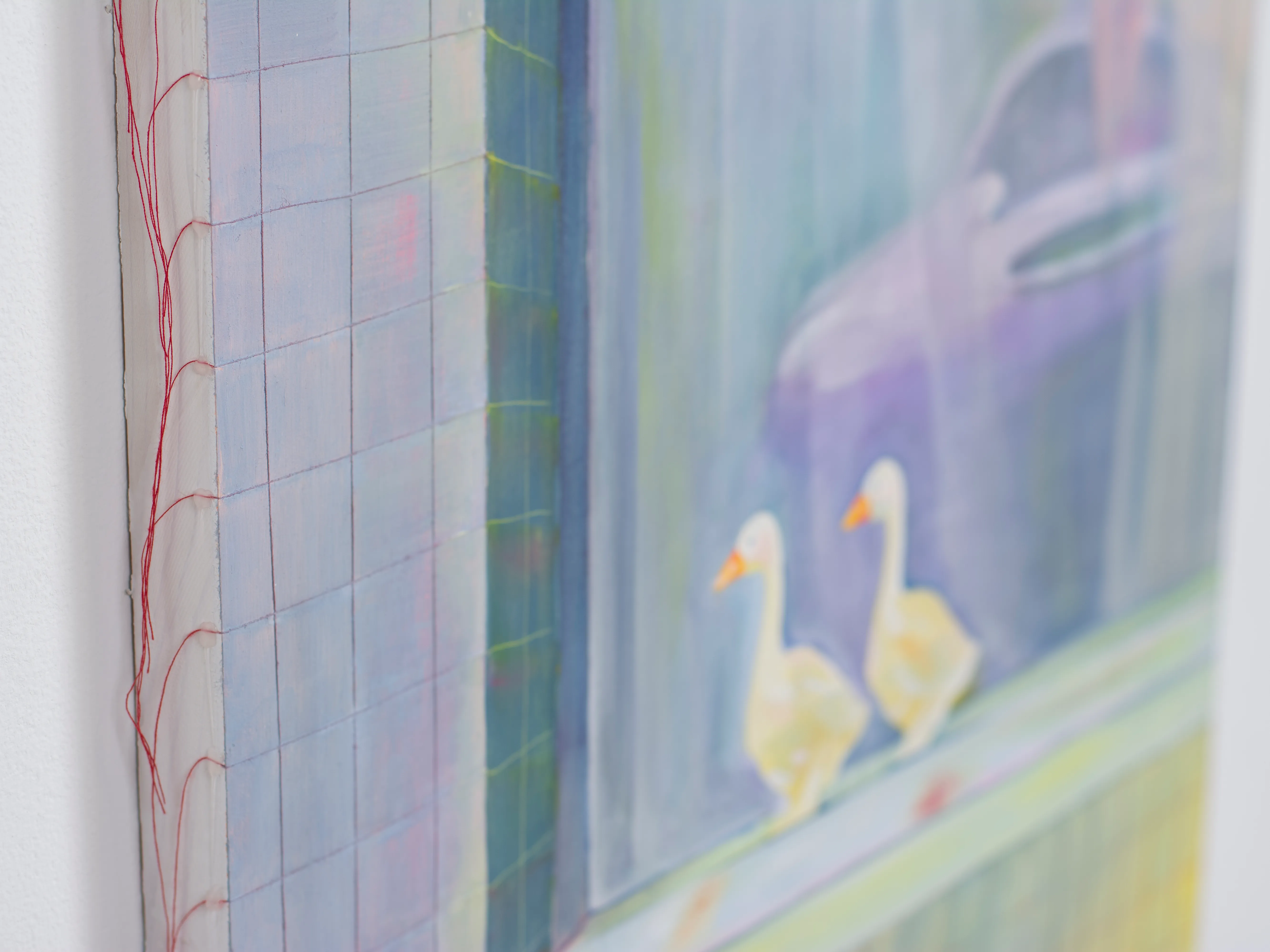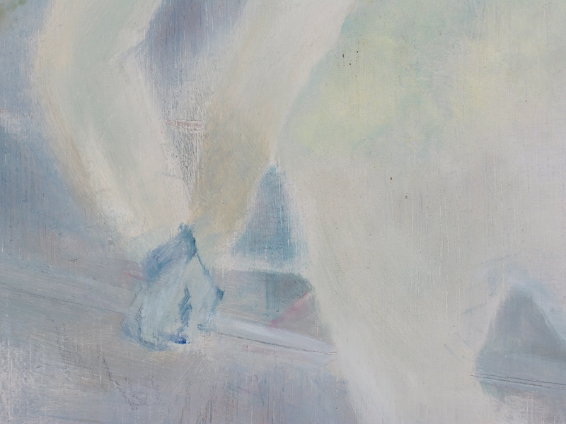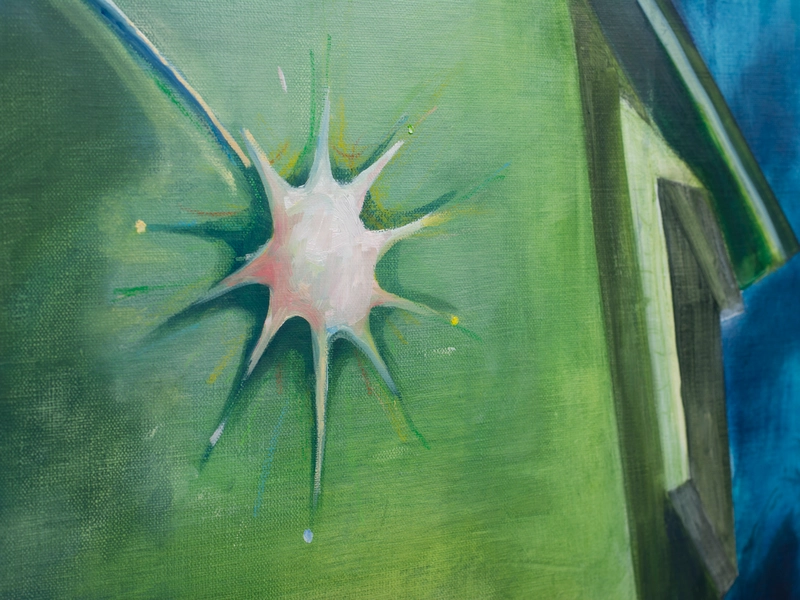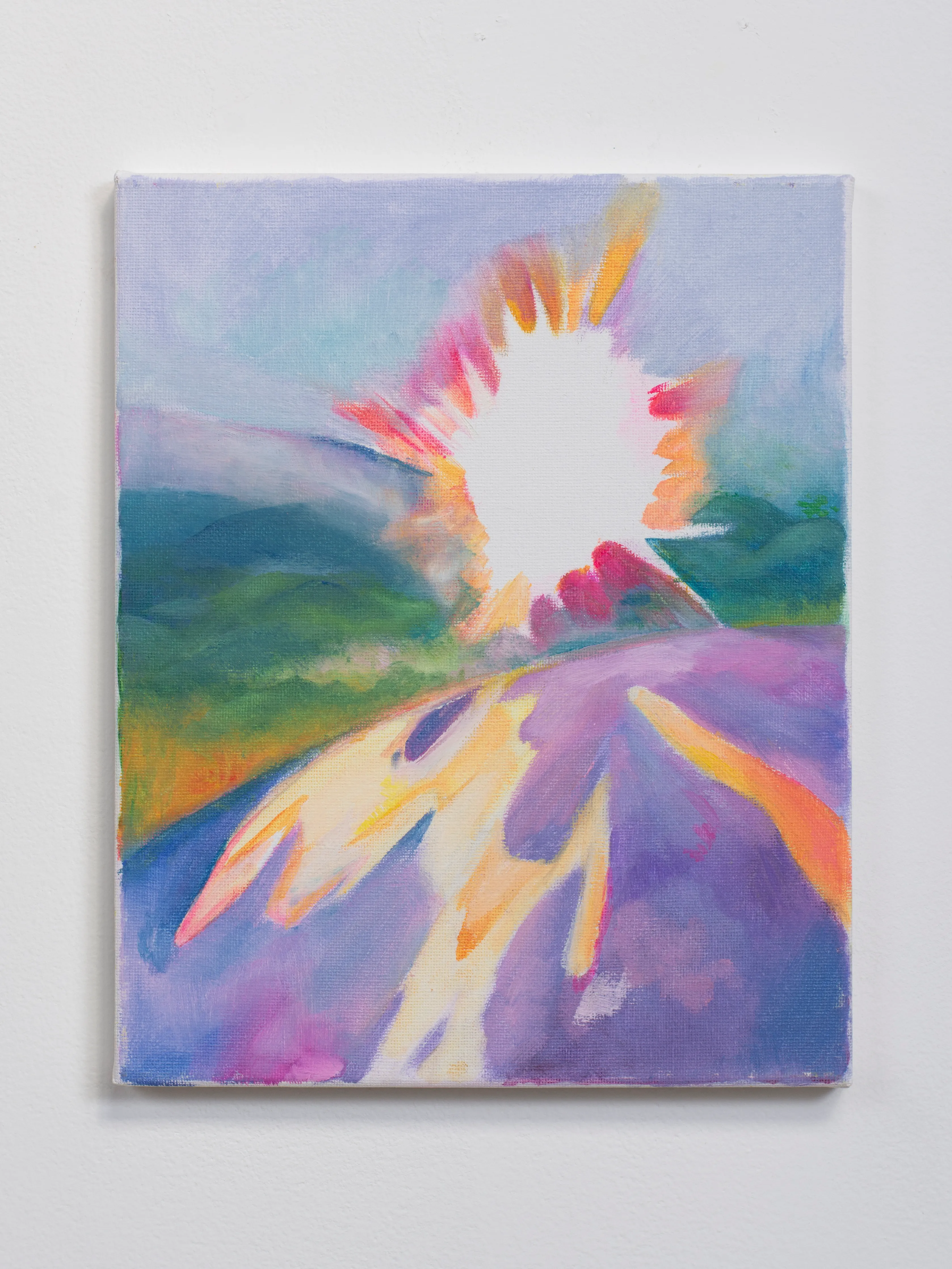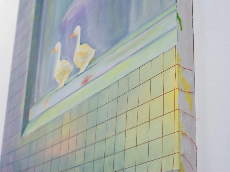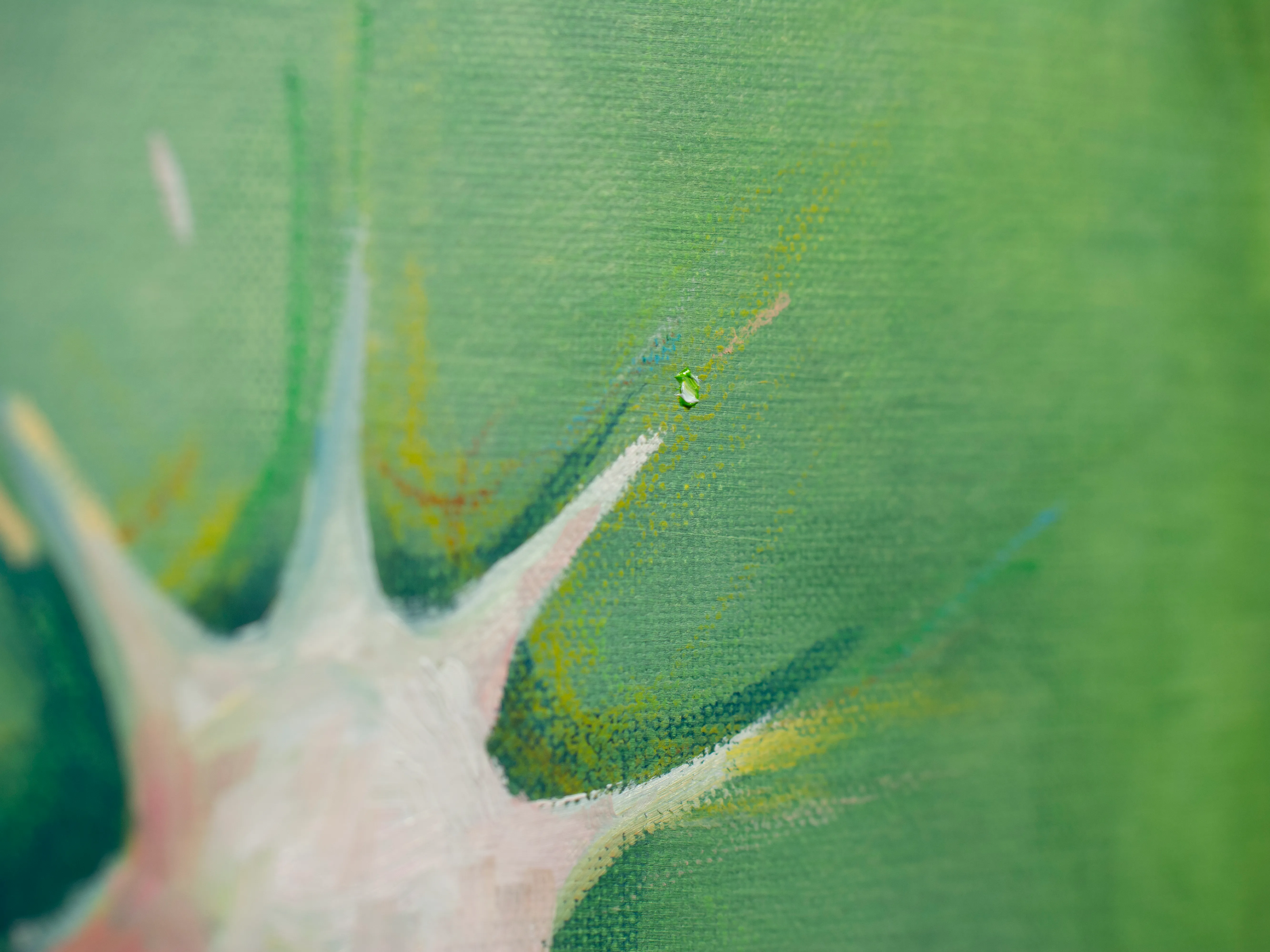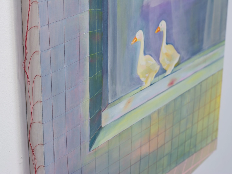 キャンバスは窓だ。 木枠は自室の窓枠で、窓枠に張ったキャンバス地はガラスになる。 窓から外側を見ているとき、私たちは守られている。 窓を打ちつける強い雨が降っていても、 大きな生き物が見えても、 ガラスが割れない限り安心して外を眺めることができる。 キャンバスの窓を見ているときは、楽観的で豊かな時間になると良い。