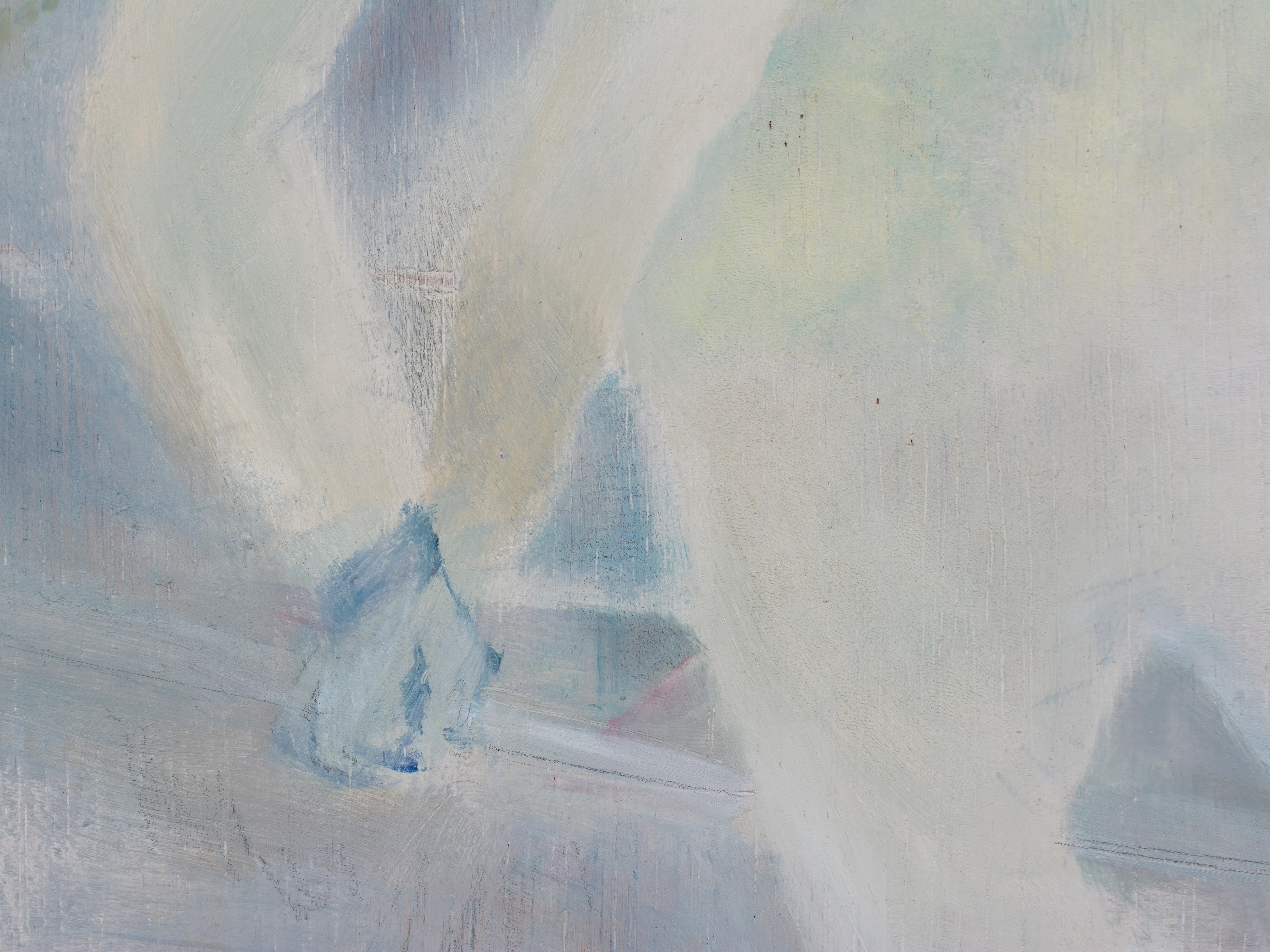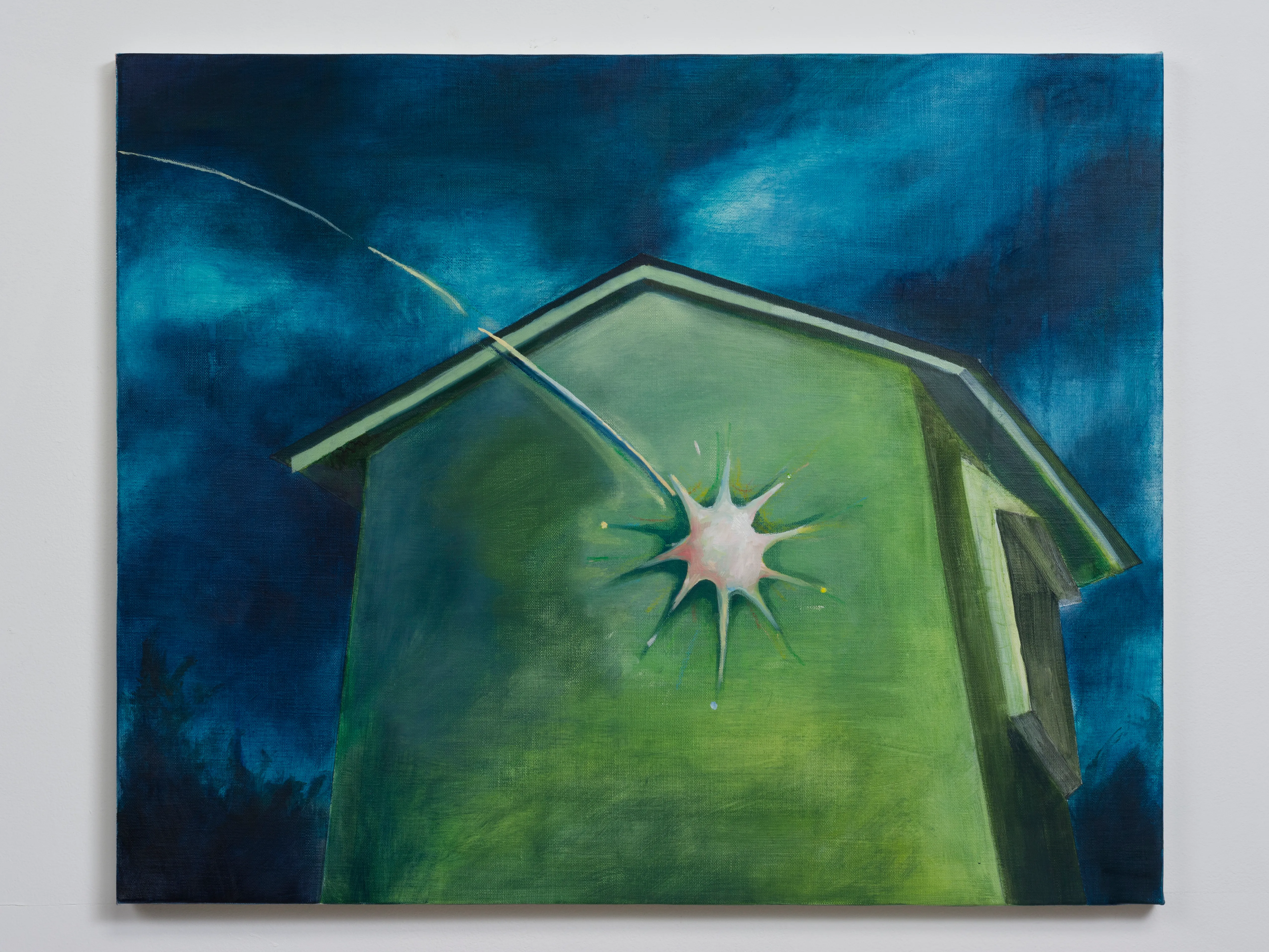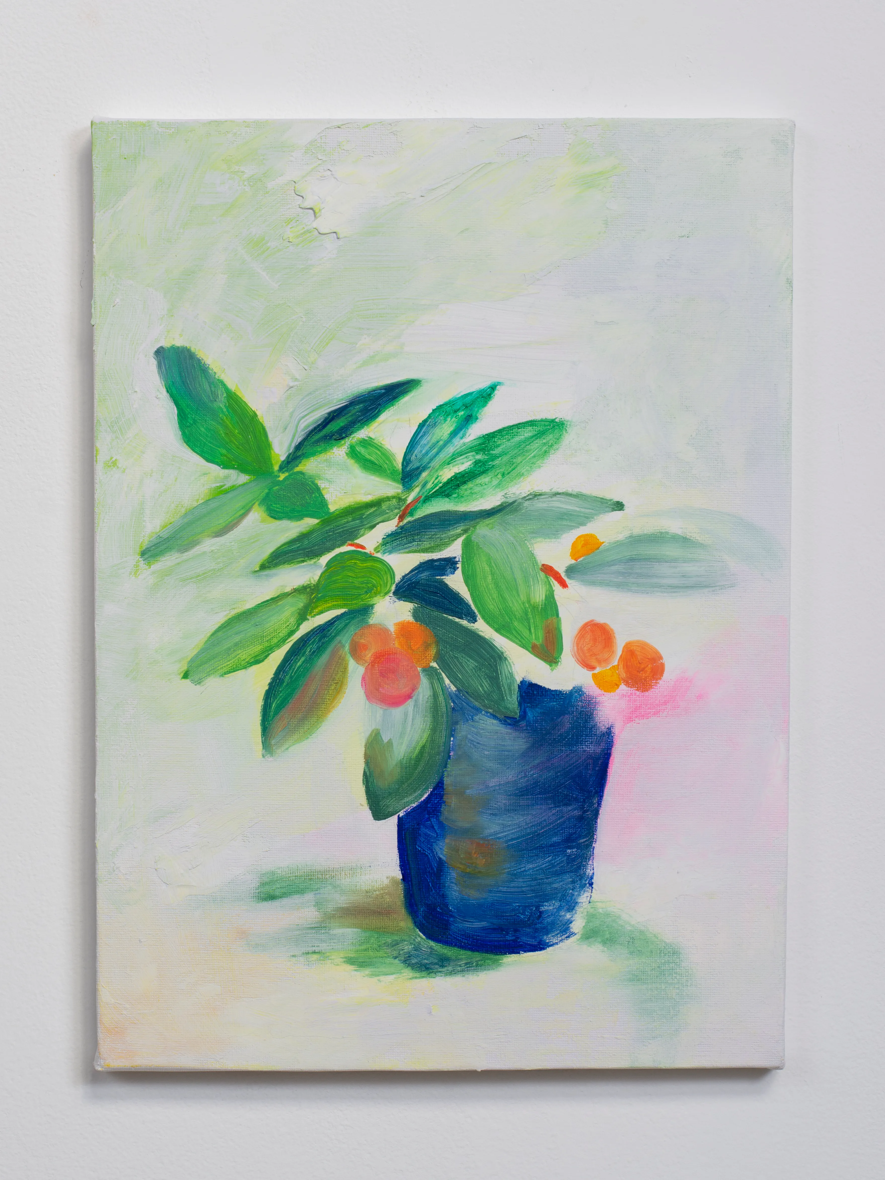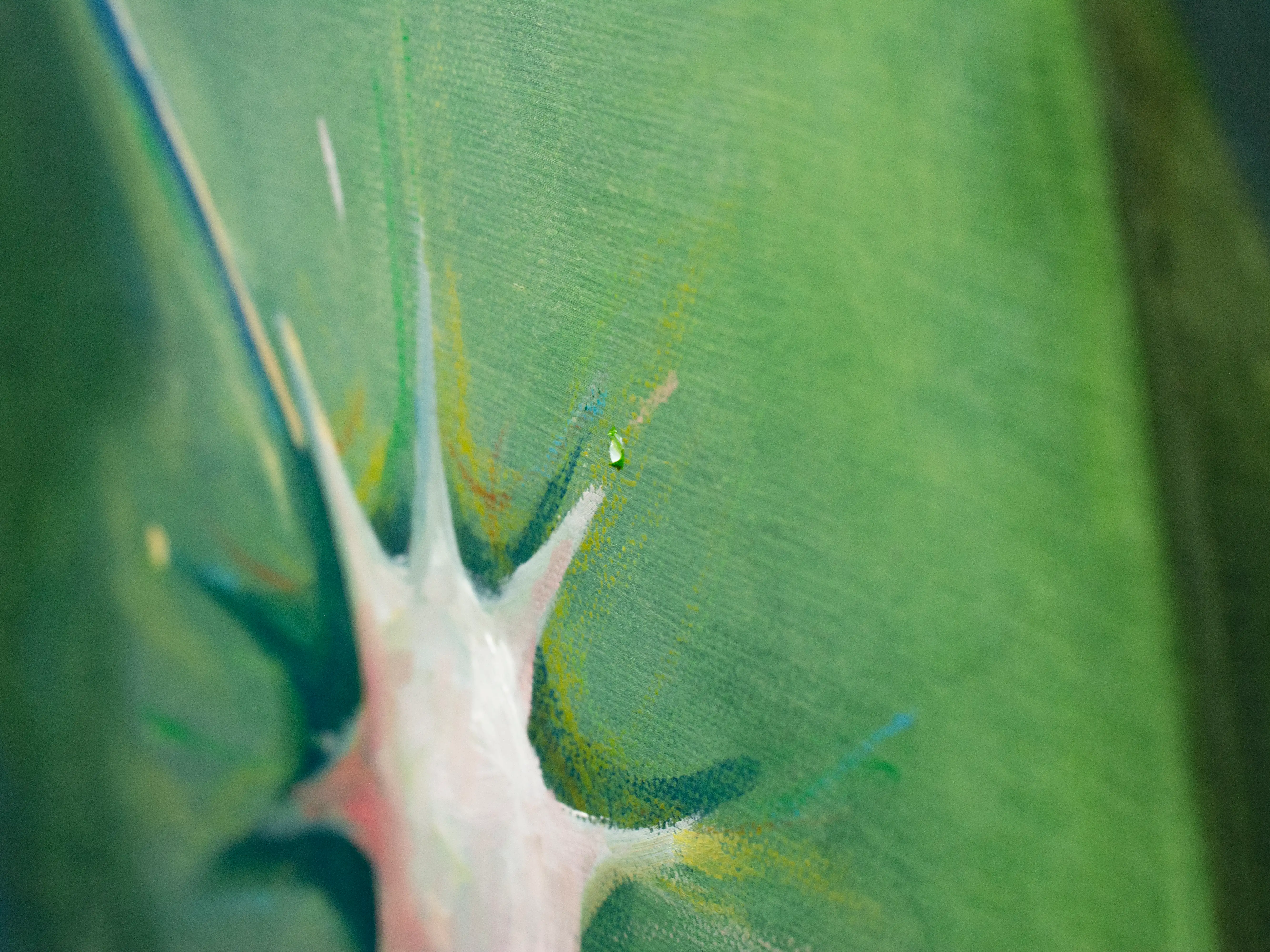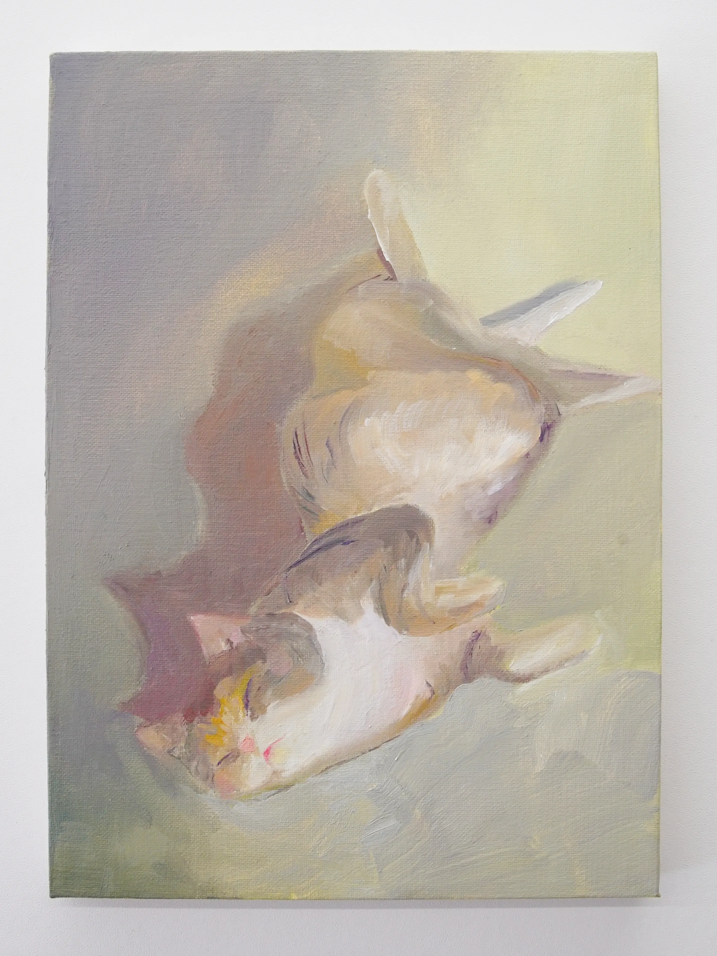 キャンバスは窓だ。 木枠は自室の窓枠で、窓枠に張ったキャンバス地はガラスになる。 窓から外側を見ているとき、私たちは守られている。 窓を打ちつける強い雨が降っていても、 大きな生き物が見えても、 ガラスが割れない限り安心して外を眺めることができる。 キャンバスの窓を見ているときは、楽観的で豊かな時間になると良い。